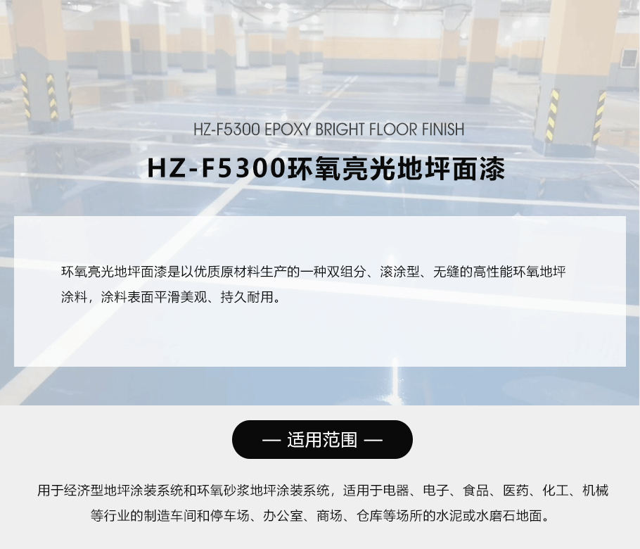 想(xiǎng)要了解更多關於HZ-F5300環氧亮(liàng)光地坪麵(miàn)漆(qī)的信息歡迎谘詢(xún) 18022280326(微信同號)